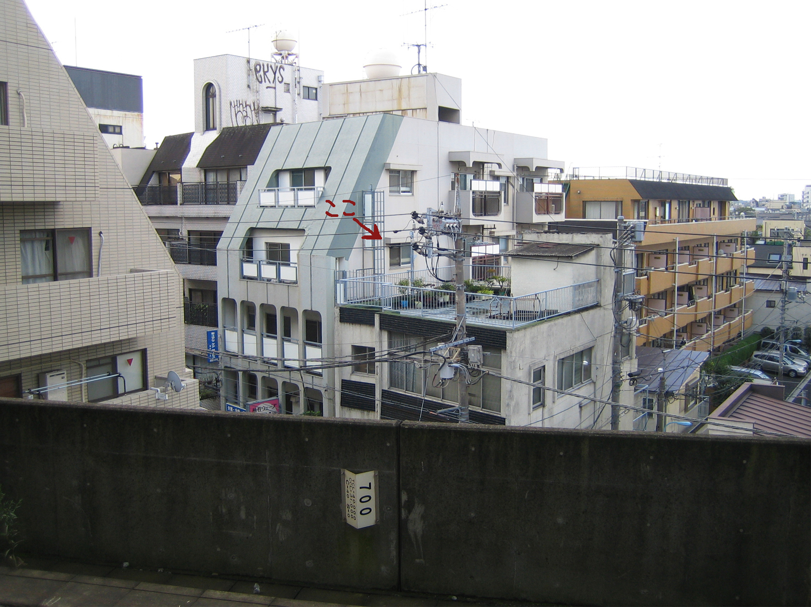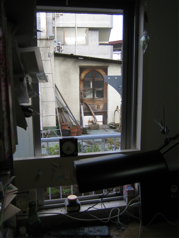この住居はビルの4階なのですが、机の前の窓から外を見ると