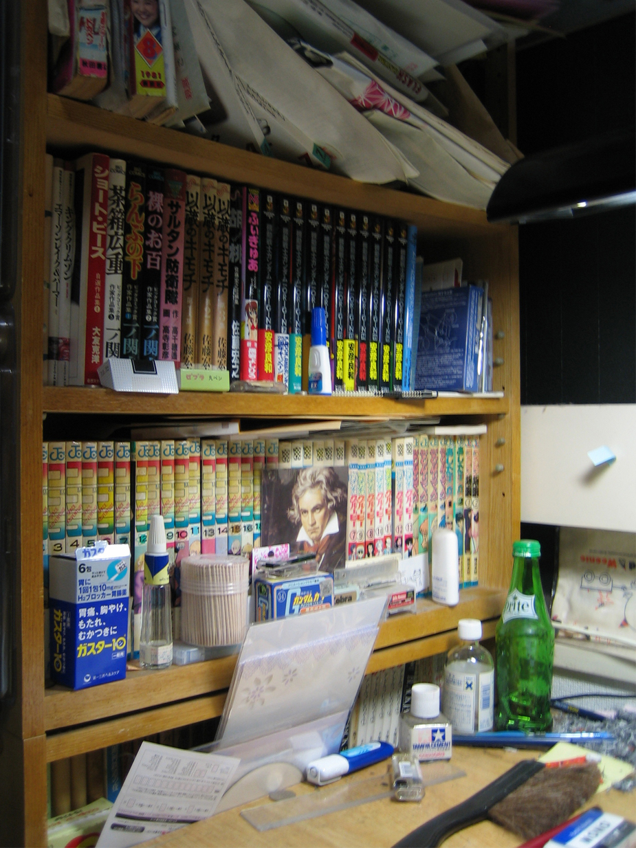 ↓は反対側の、机の右側にある本棚の一部。