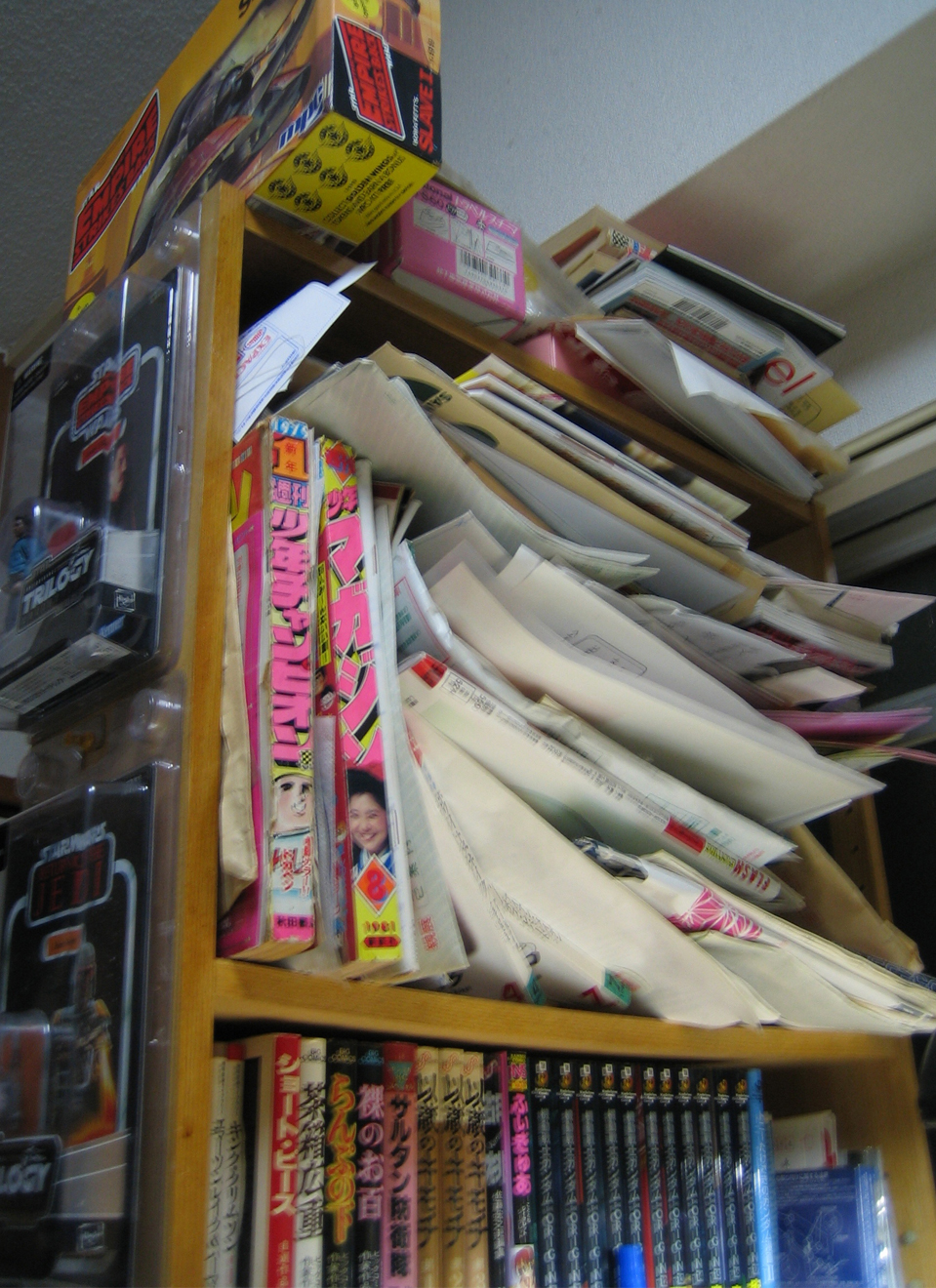 いろいろ収納されていますが、乱雑に立ててある少年チャンピオンと