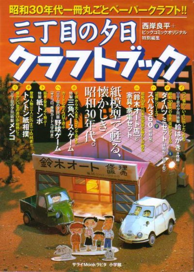 それから今日はも一つ変わったものを。こちらはあの西岸良平「三丁目の夕日」の世界をペーパークラフト化したというアイテム。その名も「三丁目の夕日クラフトブック」(そのまんまだな……)。存在自体マニアックなアイテムだが、中身もこれまたマニアックで、木造平屋建の「鈴木オート店」家具・家電セットを再現したり、三丁目の夕日版野球ゲームやメンコ、それからダイハツミゼット(後期型/MP2型)の六さん乗ってるバージョンとかがあったりして、楽しいというかシュールというか……。トントン紙相撲や特製紙トンボ(竹トンボの紙バージョン)にいたっては何をかいわんや。おお、野球ゲームには茶川さんまで。こちらはいちおうbk1にリンク貼っておきます。