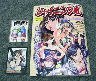 例の「シャイニング娘。」増刊を早売りでゲット。内容はこれまでの「シャイニング娘。」シリーズ5話分、「Olive」「Celery」「Caper1〜3」にプラスして「シャイニング娘。」ではない短編「しょほうせん」と「PEACH家庭教師」を追加。読み物ページとして「シャイ娘。」キャラクターファイル、設定ラフ画集、師走の翁インタビュー。さらにおまけとしてトレカがついてるんだけど……うえ、これ全4種類のうちの2枚しか付いてこないのかー。ってことはコンプリート目的で複数冊買ってく人が絶対いるってことだが、発行部数はそんなに多くないだろうし、店によっては入手しづらいかも。近隣の書店に1冊しか入荷しないなんて場合はどうしたらいいものやら。ちなみにこのトレカは全22種類発行されるそうで、この増刊で4種類、この夏発売の単行本上下巻で8種類ずつが付くらしい……。うおー商売商売。珍しくこの手のものをコンプリートしたくなってきちゃってる自分がいる。