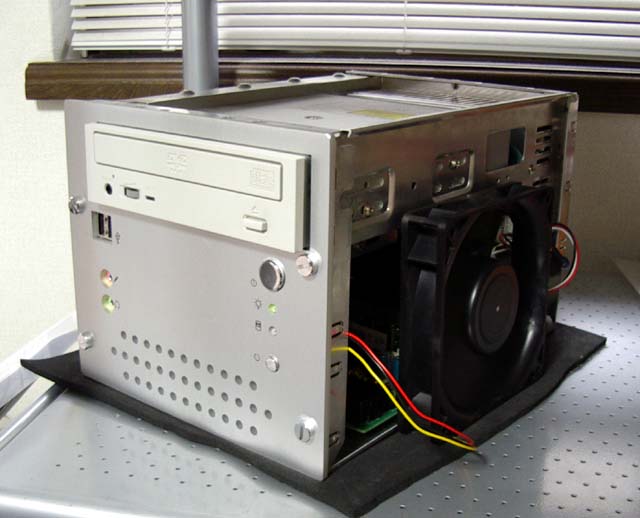 ▼6月22日の日記で書いたとおり、ビデオエンコ&キャプチャー用のキューブPCに12cmファンを追加したら、ずいぶんいい具合になった。写真のような状態で、ケースは開けたまま、ファンは固定とかはとくにせず横にただ置いてあるだけ。1日中ビデオエンコを回しっぱなしにしててもHDDが43℃程度。CPUも60℃弱程度に収まる。CPUはアツいものの、まあこれは壊れても別のに差し替えればなんとかなるパーツなんであんまり気にはならない。とりあえずエンコ途中で止まったりせず、普通に動いてくれていればそれでオッケー。HDDは壊れるとデータ吹っ飛んじゃうので損失はむちゃくちゃデカいけど、CPUだけなら壊れても取り返しはつく。CPUなら最近はそこそこのものでも1万円以下で買えるし。まあそんなわけで静音化&冷却は完了。これならマシンつけたままでも安心して寝られます。